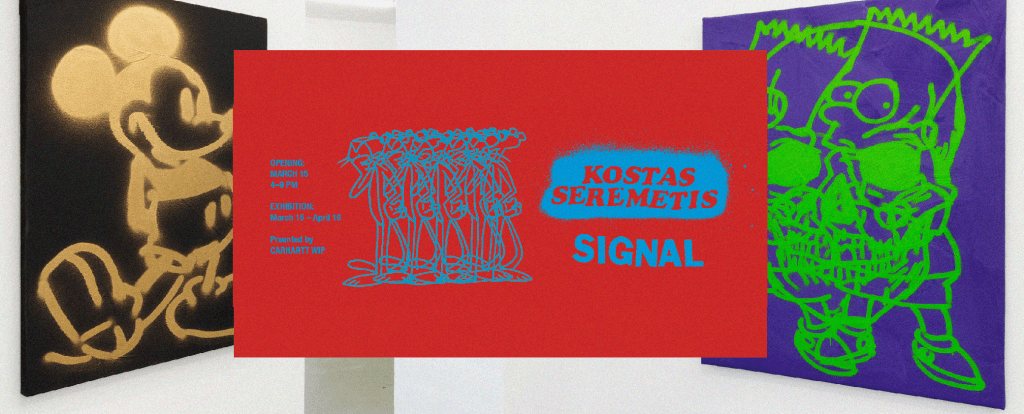 La mostra Signal di Seremitis , presentata da Carhartt, mostra una collezione di tele di graffiti con le figure della cultura pop Pink Panther, Bart Simpson, Garfield, Odie, Topolino, Felix the Cat e altro ancora.
