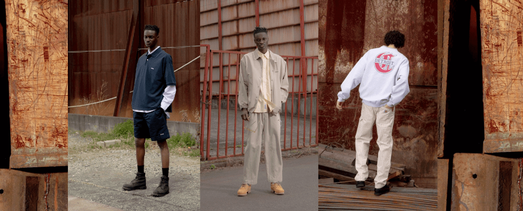La collezione presenta maglioni girocollo oversize con marchio, il suo iconico gilet da lavoro in una tonalità di colore grigio-verde, giacche da lavoro in un classico blu navy e una giacca a vento con colletto marrone chiaro. Il lookbook ha stilizzato gli outfit con una serie di tecniche di stratificazione, che ricordano l’estetica dello street style giapponese.