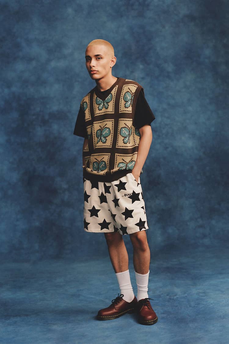L’offerta sartoriale è stata aggiornata con un motivo a righe grigie con sfumature complementari di rosa pastello e blu. Altrove nella collezione c’è un completo coordinato leopardato e tute classiche con cuciture a contrasto. A completare l’offerta c’è una selezione di cappelli da pescatore, trucker e a 6 pannelli.