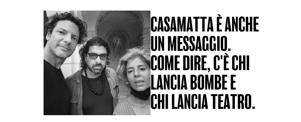 Valentina: «Casamatta è un bunker, un’opera di fortificazione, destinata a raccogliere armi. Casamatta è anche un gioco di parole che ben racconta il mondo del teatro, rifugio di arti e follie creative. Casamatta è anche un messaggio. Come dire, c’è chi lancia bombe e chi lancia teatro».
