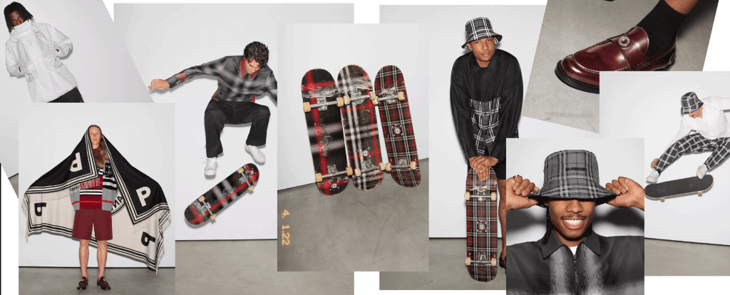 Burberry dopo la presentazione della sua collezione Autunno/Inverno ha creato con l’etichetta di Amsterdam Pop Trading Company una capsule collection ispirata alla club mondiale degli skater. Abbandonando i toni caratteristici del beige e del marrone betulla, la gamma opta invece per una tavolozza di grigio, nero e rosso, rendendo omaggio ai cupi paesaggi urbani del Giappone.