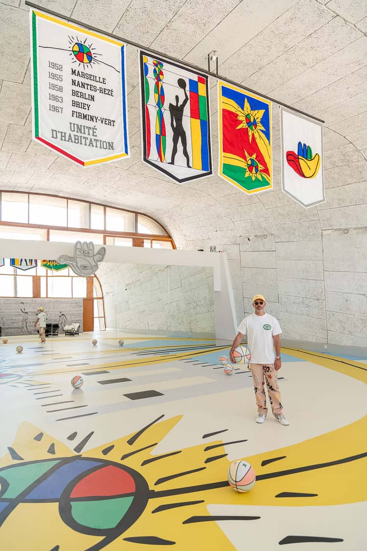 Per la sua ultima installazione “Le Modulor du Basketball”, Daniel Arsham rende omaggio all’architetto Le Corbusier.