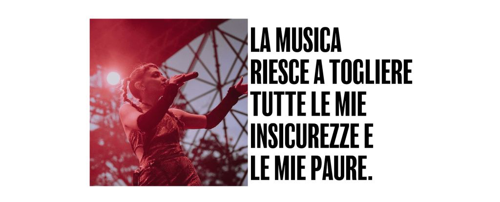 Le “alte definizioni”, le apparenze di perfezione, le bellezze oggettive e risultati matematici non mi sono mai interessati davvero, eppure mi hanno fatto prigioniera per anni: mi hanno portato ad odiare la mia forma. Il mondo dell’arte mi ha salvato in qualche modo, mi ha dato coraggio, motivo per cui ora è un mio desidero sempre più forte liberarmi da sovrastrutture, e raccontare che è possibile, attraverso quelli che sono i miei mezzi: la mia minuscola esperienza, la mia musica e l’immagine.