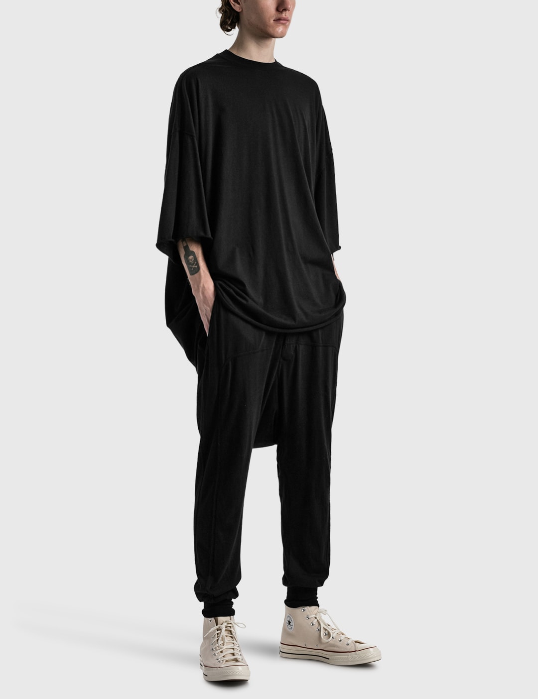 Utilizzando il nero e il grigio come componenti principali di ogni collezione – simboli rispettivamente di follia e dolore – il centro dell’etichetta intorno all’amore di Horikawa per l’arte e l’architettura, che sono stati parte integrante della formazione iniziale del marchio come progetto artistico.
