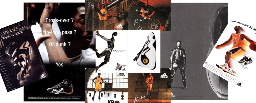 A differenza del collega Allen Iverson, Kobe non era ancora allo stato di avere una scarpa firmata, ma proprio come l’Allen lo era per Reebok, Bryant era il nuovo volto di adidas.